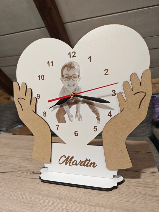 🕰 Personalizirani drveni sat s gravurom fotografije i imena